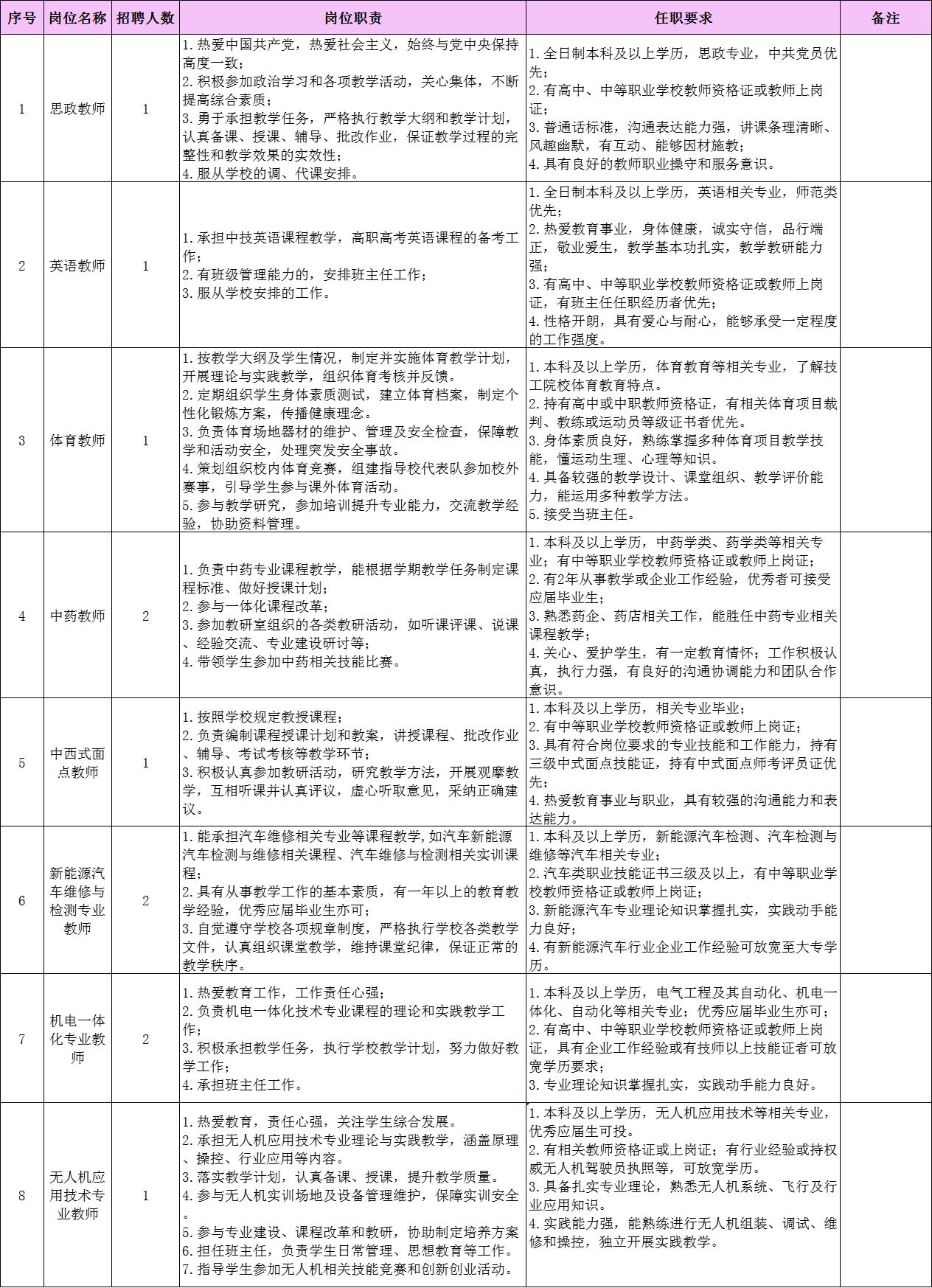 清遠市南方技工學校2025年下半年教職工招聘公告
